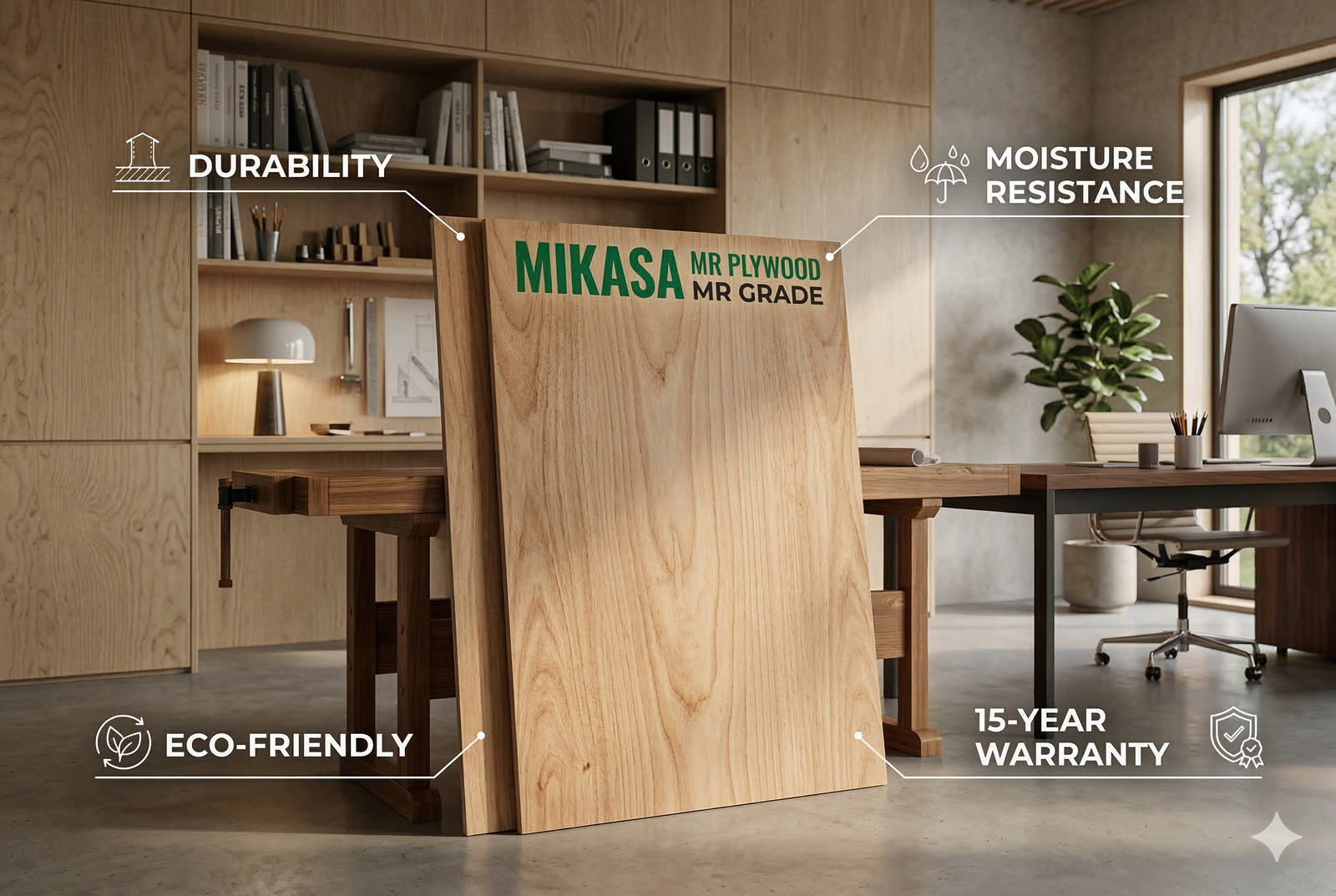 Applications: MIKASA MR+ Plywood is widely used for home and office interior furniture such as wardrobes, beds, cabinets, and TV units. It is also suitable for panelling, partitions, and modular furniture in dry interior spaces. MR+ plywood delivers trusted quality, durability, and peace of mind for every project.